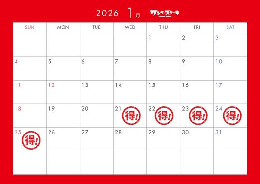 閉店大特価セール第2弾は、1月21日(水)~25日(日)までの5日間で実施致します。第1弾の「とろけるハラミカットステーキ閉店大特価」のイベントと合わせて、お得にワンダーステーキをお楽しみください。