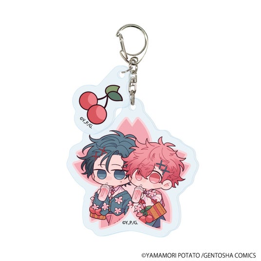 さくらんぼのミニパーツが付いた、キュートな約6cm×5cmのアクリルキーホルダーです♪