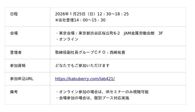 当日は、コレックグループの事業紹介や直近の業績ハイライト、今後の経営方針についての説明を予定しています。後半では、質疑応答の時間も設けておりますので、ぜひご参加ください。