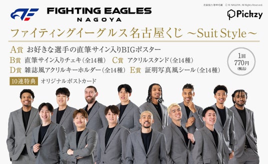 2026年1月21日(水)より、ぴあのオンラインくじサービス「Pickzy(ピクジー)」(https://pickzy.pia.jp/)にて、愛知県名古屋市をホームタウンとするバスケットボールチーム「ファイティングイーグルス名古屋」のオンラインくじ販売を開始いたしました。「Pickzy」はぴあ株式会社が2023年12月に立ち上げた、PCやスマートフォンでくじを引くことができ、はずれなしで限定グッズやコンテンツが必ず手に入るオンラインのくじサービスです。