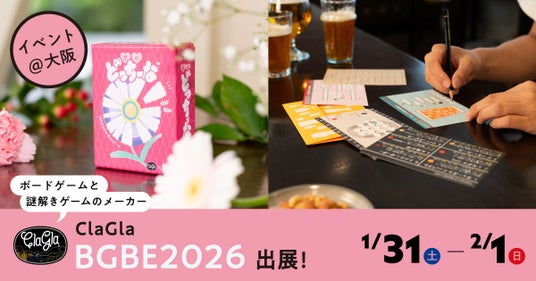 札幌市にあるボードゲーム・謎解きゲームのメーカー・出版社のClaGla(株式会社クラグラ)は、2026年1月31日(土)・2月1日(日)に行われる、西日本最大級の販売とビジネス交流ができる日本初のボードゲームイベント「Board Game Business Expo Japan」の【D-8 ClaGlaブース】にて、各種ボードゲーム・謎解きゲームをイベント価格で販売いたします!
