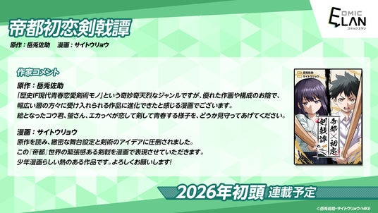 株式会社HIKE(本社:東京都新宿区、代表:三上 政高、以下「HIKE」)の電子漫画出版事業を担う「HIKE編集部」は、少年/青年向け作品を中心に扱うレーベル「COMIC ELAN」(コミックエラン)の第一弾として、『帝都初恋剣戟譚』(ていとはつこいけんげきたん)を連載開始予定です。本作品は「歴史IF×青春×剣戟」アクションで、日本最大級の小説投稿サイト「小説家になろう!」にて2023年9月より連載中の同名作品のコミカライズです。正式な配信開始日、配信プラットフォームは後日発表をお待ちください。