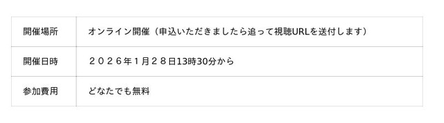 - 事前登録や参加申込方法:こちらからお申し込みください