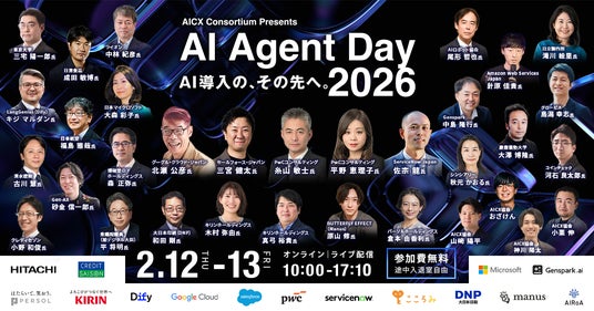 生成AI技術を活用したAIエージェントの社会実装を推進し、顧客体験(CX)の変革を目指す一般社団法人AICX(AI Customer Experience)協会(東京都、代表理事:小栗伸、小澤健祐、以下、AICX協会)は、2026年2月12日(木)~2月13日(金)に開催するカンファレンス「AI Agent Day 2026」の全登壇者及びセッションタイムテーブルを公開しました。