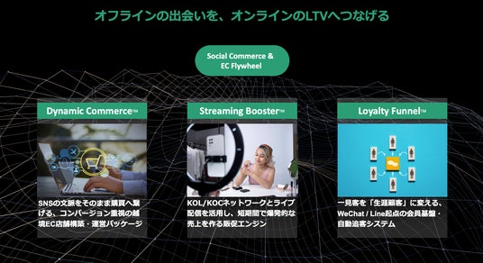 「旅マエ」の指名来店から、「旅アト」の越境EC購入へ。訪日インバウンドを一過性の消費で終わらせず、帰国後も現地のECプラットフォーム(Shopee/Tmall等)を通じて商品を届け続け、生涯顧客(LTV)へと育成。