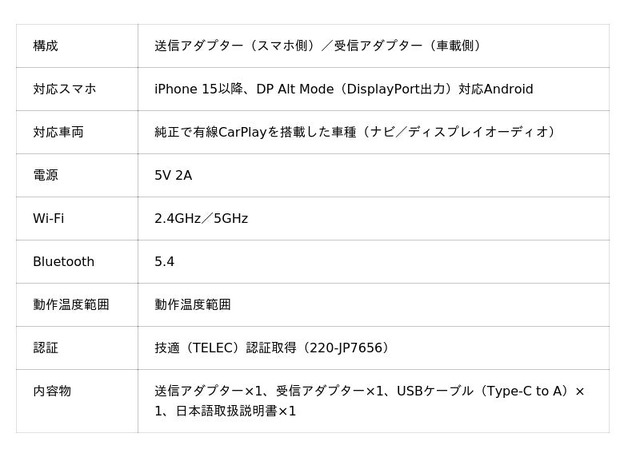 - ワイヤレス運用で手間を削減:投影だけでなく、CarPlay利用者の“ケーブル負担”も軽く