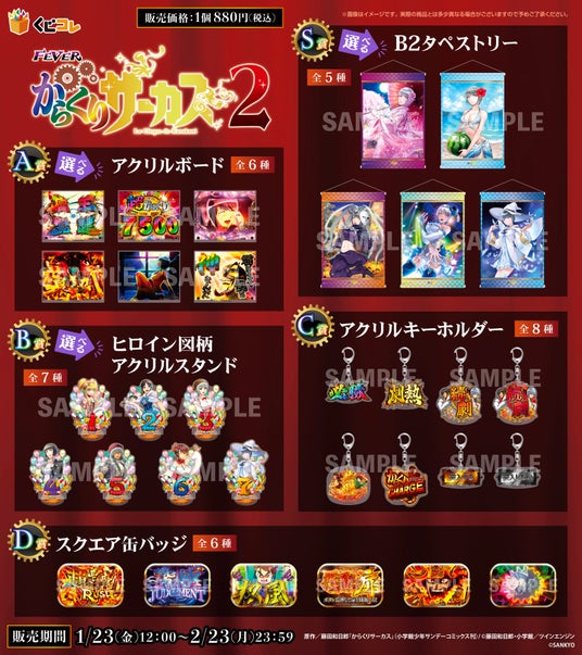 今回のくじコレ『FEVERからくりサーカス2』では、『FEVERからくりサーカス2』の素材をふんだんに使用した、オリジナルグッズをご用意しました!