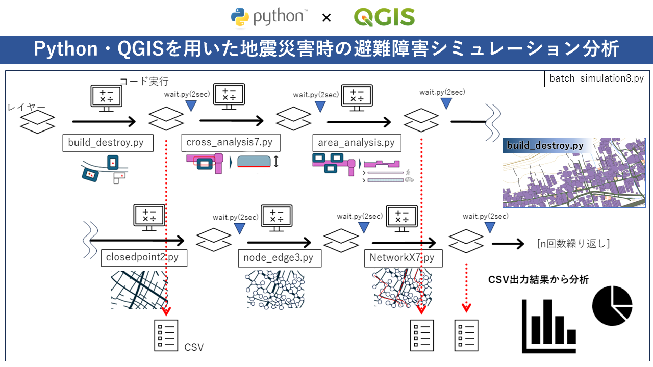 Nakamura Yoshiyuki:Python・QGISを用いた地震災害時の避難障害シミュレーション分析