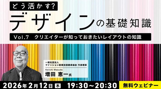 株式会社クリーク・アンド・リバー社(C&R社)は2026年2月12日(木)と26日(木)、Webや映像、ゲーム、広告・出版、ファッション、インテリアなどでデザイナーとして活躍されている方を対象に、無料のオンラインセミナー「どう活かす?デザインの基礎知識Vol.7・Vol.8」を開催します。