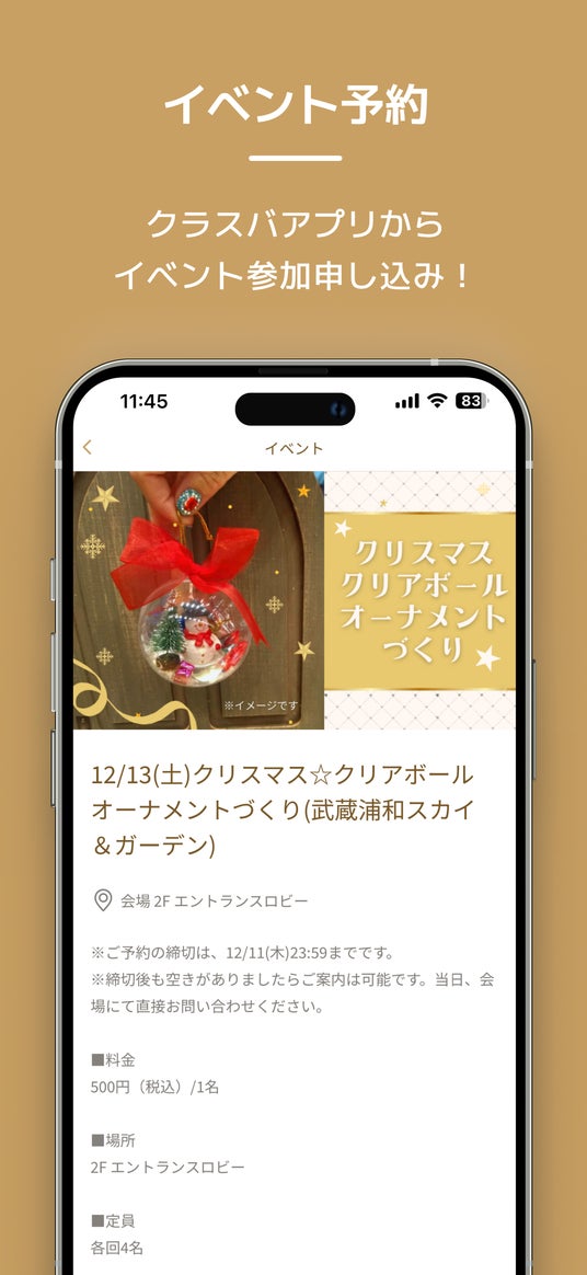 気になるイベントや体験会を見つけたら、そのままアプリ内で予約。電話や複雑な手続きは不要です。