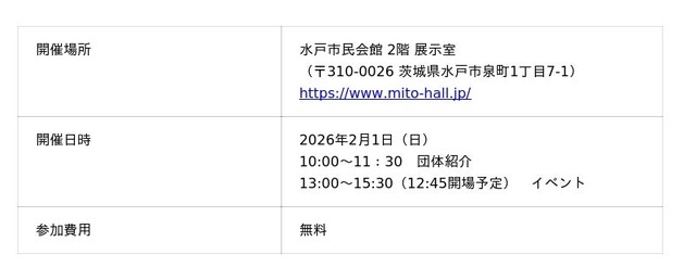 日程:2026年2月1日(日)13:00~15:30(12:45開場予定)