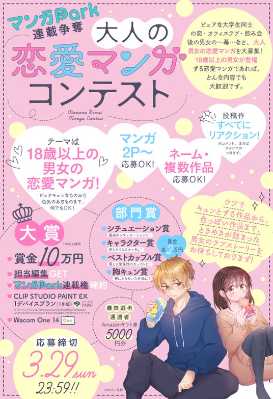 ・テーマは“18 歳以上の男女の恋愛マンガ”!ピュアキュンなものから色気のあるものまで、何でもOK!