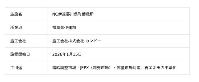 ▲NC伊達郡川俣町蓄電所 設置の様子