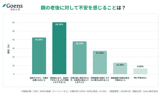 年末年始などに久々の再会を果たした子供世代の9割近くが「親の老い」を感じており、将来の不安として「認知症(60.3%)」がトップに。