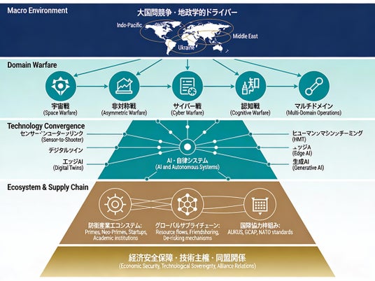 台湾海峡有事シナリオから弾薬不足という産業基盤の脆弱性まで、戦略環境と防衛産業の接点を具体的に分析することで、企業・研究機関・政策機構が直面する実装課題と機会を明らかにする。