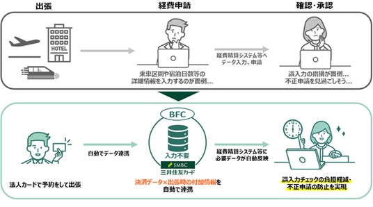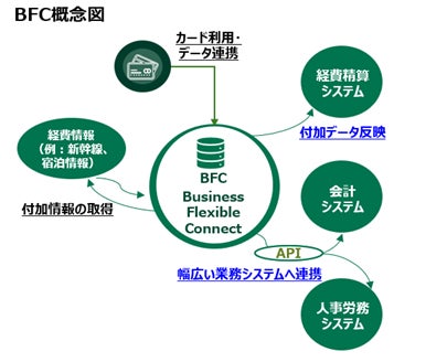 三井住友カード株式会社(本社:東京都江東区、代表取締役 社長執行役員 CEO:大西 幸彦、以下:三井住友カード)は、国内カード会社で初めて*多様な業務システムとの連携が可能となる法人カード専用のデータ連携基盤『Business Flexible Connect(以下、BFC)』を開発いたしました。経費精算システムや会計システムといった企業が利用する業務システムと、三井住友カードが発行する法人カードのデータ連携項目がより一層拡がるため、企業の業務効率化とガバナンス強化に繋がります。