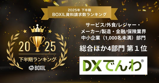 電話AIエージェント「DXでんわ」や、カスタマーサポートを自動化するAIエージェント「AIto(アイト)」などを提供するメディアリンク株式会社(本社:東京都港区、代表取締役:松本 淳志、以下 メディアリンク)が、スマートキャンプ株式会社(以下「スマートキャンプ」)が主催する「2025年下半期 BOXIL資料請求数ランキング」のIVR(自動音声応答システム)カテゴリ 総合ほか4部門で1位に選出されました。