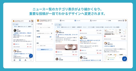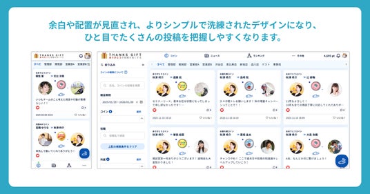 「THANKS GIFT」はこれまで、多くの企業様のエンゲージメント向上に寄与してまいりました。その中で「より自社の文化に馴染むデザインにしたい」「運用に合わせて機能を柔軟に使い分けたい」というお声を数多くいただいております。今後、より各社ごとの多様な組織文化にフィットするプラットフォームへと進化させていくため、サービス提供開始以来最大級となるアップデートを実施いたしました。