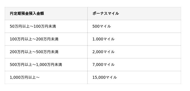 - 期間中にJAL NEOBANK円定期預金(6ヵ月もの)を50万円以上預入れ、満期を迎えること