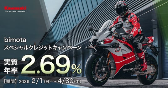 bimotaの国内総輸入元である株式会社カワサキモータースジャパン(本社:兵庫県明石市、代表取締役社長:佐伯 健児)は、2026年2月1日(日)より、全国のbimota正規取扱店でbimotaの新車をご購入時に、実質年率2.69%でクレジットをご利用いただける「bimotaスペシャルクレジットキャンペーン」を実施いたします。