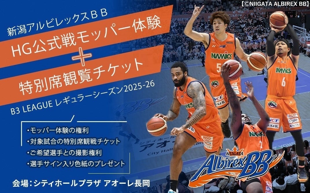 「新潟アルビレックスBB HG公式戦モッパー体験+特別席観覧チケット」