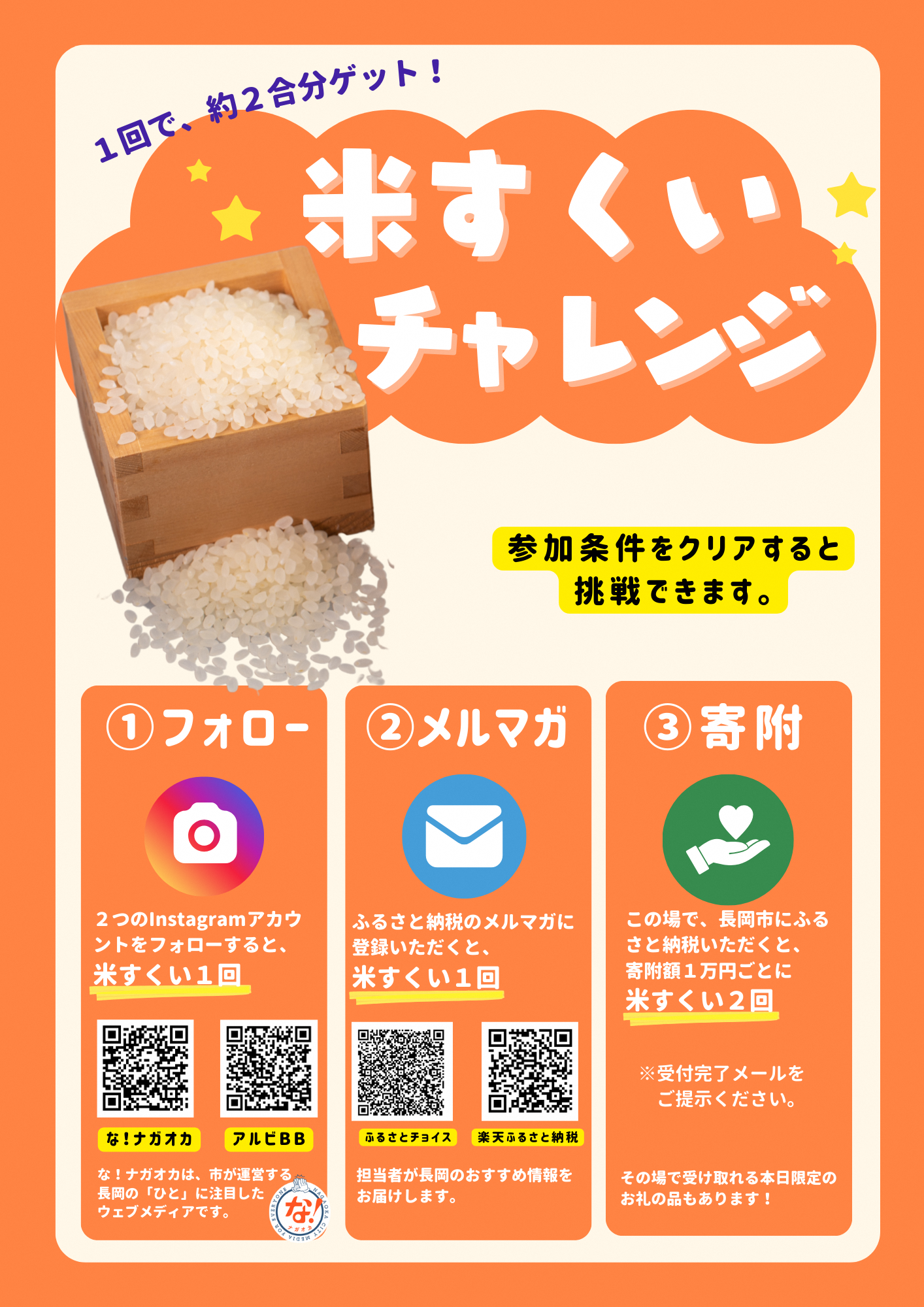 ・SNSフォロー、メルマガ登録などでお米すくいチャレンジ