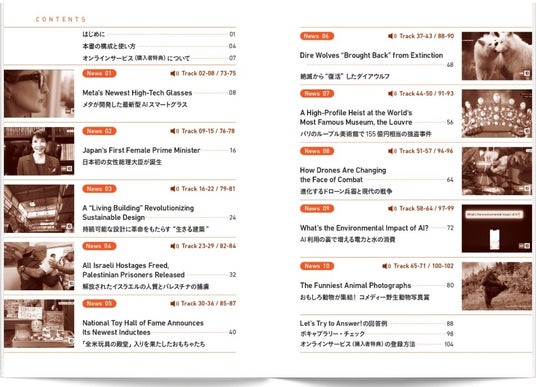 ・アメリカの高校生などに最新の話題を易しく伝える番組「CNN10」(旧名「CNN Student News」)が素材。・ナチュラル音声、ゆっくり音声[ポーズ入り]、ゆっくり音声[ポーズなし] の3パターンのMP3付き(*ゆっくり音声[ポーズ入り] は各ニュースのイントロダクションのみ)。