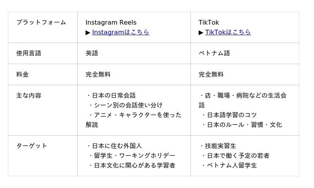 本取り組みは、サービス販売を目的とせず、日常生活や職場で“すぐに使える日本語”をSNS上で気軽に学べる環境を整えることで、在日外国人の不安軽減と社会参加を支援するものです。