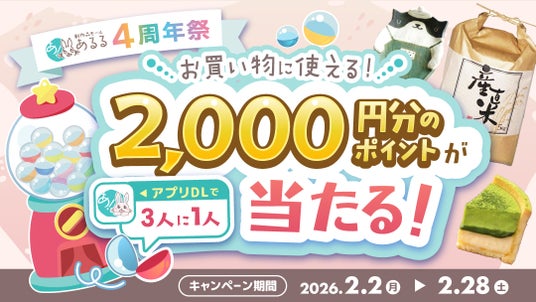 本キャンペーンでは、あるる公式アプリをダウンロードし、特設ページからガチャを回すと、3人に1人の確率で2,000ポイントが当たります。当選したポイントはその場で付与され、すぐにお買い物に利用できます。