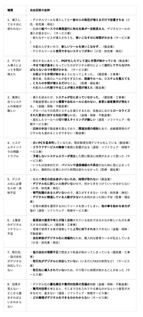 - デジタル化で困った経験や問題についての自由回答