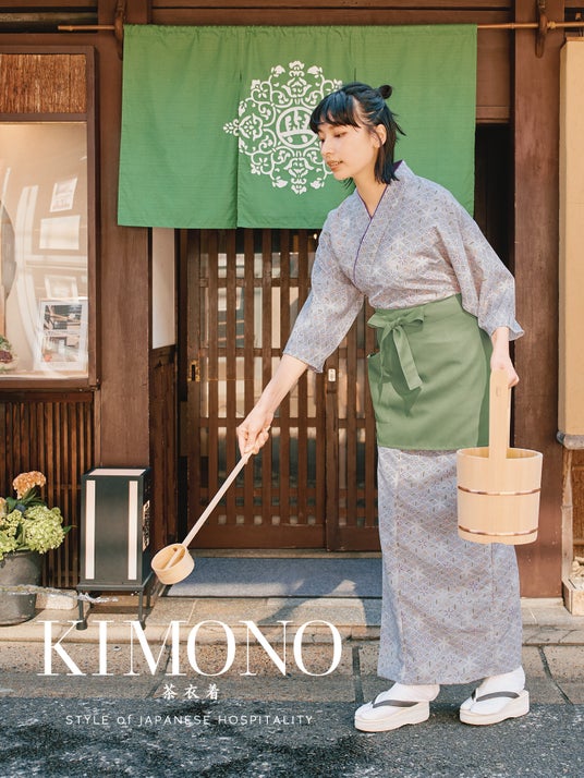 「紡ぐ衣(つむぐころも)」と「KIMONO茶衣着」は、昨今のインバウンド需要から、和スタイルのユニフォームのご要望の高まりを受けて誕生しました。