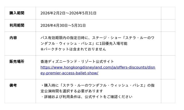 また、ファンに人気のステージ・ショー「ステラ・ルーのワンダフル・ウィッシュ・バレエ」を2026年4月30日(木)から5月31日(日)の期間限定で再演します。ディズニー・ストーリーブック・シアターを舞台に、ステラ・ルーが再び主役となり、約30分間の感動的なパフォーマンスで“夢を追いかける大切さ”を伝えます。「ディズニー・プレミア・アクセス:ステラ・ルーのワンダフル・ウィッシュ・バレエ」を利用すれば、ステラ・ルーの夢が輝く瞬間を、より近く、より特別な席でお楽しみいただけます。