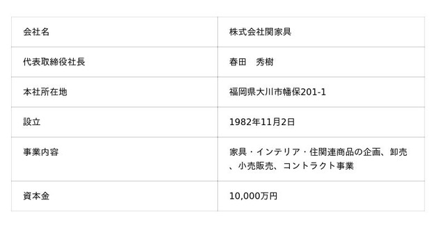 株式会社関家具 会社概要