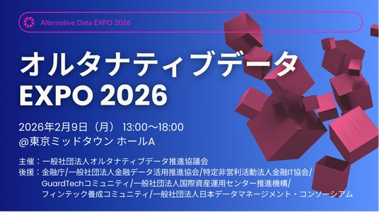 年に一度のオルタナティブデータの祭典である、「オルタナティブデータEXPO'2026」を今年も開催させていただきます。今年は特に生成AI活用の観点から、各会員企業からの事例を中心としたプレゼンやパネルディスカッションを中心に、ブースの展示やピッチマラソンなど充実したコンテンツをお届けします。生成AI活用の鍵となるオルタナティブデータの国内最大のイベントに是非ご参加ください。