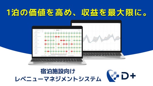 レベニューマネジメントシステム「D+」は、宿泊施設における価格調整や販売判断を、データをもとに支援するシステムです。