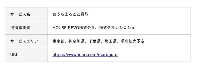 不動産売却プラットフォーム「イエウリ」を運営するHOUSE REVO株式会社(本社:東京都千代田区、代表取締役:東峯 一真、以下 HOUSE REVO)と不要品のお片付けや処分、買取サービスを展開する株式会社カシコシュ(本社:東京都港区、代表取締役:大武 敏朗、以下 カシコシュ)は、共同事業として、不動産の売却と残置物の片付けを一本化する新サービスの「おうちまるごと買取」( https://www.ieuri.com/marugoto )をローンチいたします。
