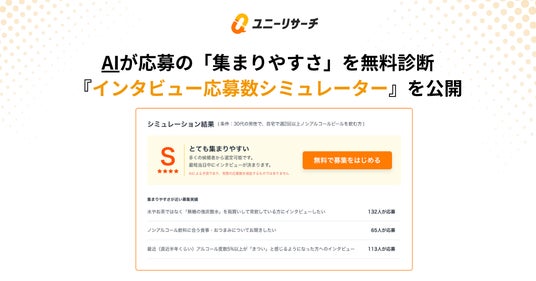 株式会社プロダクトフォース(所在地:東京都港区、代表取締役CEO:浜岡 宏樹)が運営する国内最大級のダイレクトリサーチプラットフォーム「ユニーリサーチ」は、インタビュー対象者の募集条件を入力するだけで、AIが応募の「集まりやすさ」を判定する新機能「インタビュー応募数シミュレーター」を公開しました。