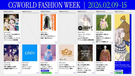 CGWORLDが初開催する、CGとファッションの“今”と“これから”を伝える1週間のオンラインイベント「CGWORLD Fashion Week」。このたび、全セッションのタイムテーブルを公開しました。