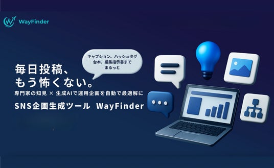 WayFinderは、SNS運用における「企画・台本・構成案・キャプション」等の作成をAIが自動化する実務特化型のAIツールです。