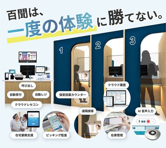 本体験会は、薬局経営者ならびにシステム導入や業務改善を担う薬局幹部を対象とした、少人数・予約制で実施する小規模・高密度型の体験イベントです。業務効率化と患者満足度の両立に向けたポイントを解説するセミナーに加え、受付から会計まで一連の業務をサポートする各種薬局DXや患者のプライバシーに配慮した環境を実際に体験でき、個別相談まで行います。本体験会を通じて、DXによる業務効率化と、薬剤師が患者一人ひとりに向き合うための環境づくりに向けた検討の機会を全国に提供していきます。