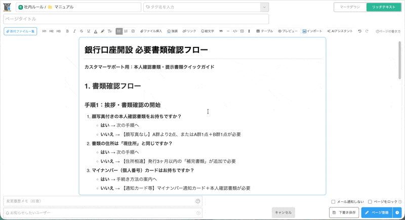 AIを活用した「ページ作成支援機能」が新たに2つ追加されました!手元のファイルを活用してスピーディーにマニュアル化したり、