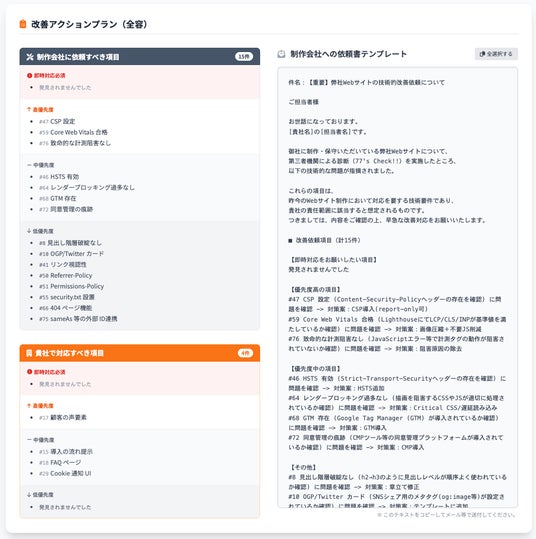 → 診断結果レポートをそのまま渡すだけで、具体的な修正依頼が可能