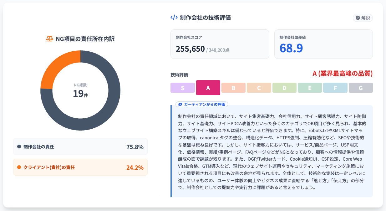→ 候補の制作会社の実績サイトを診断し、技術力を比較可能