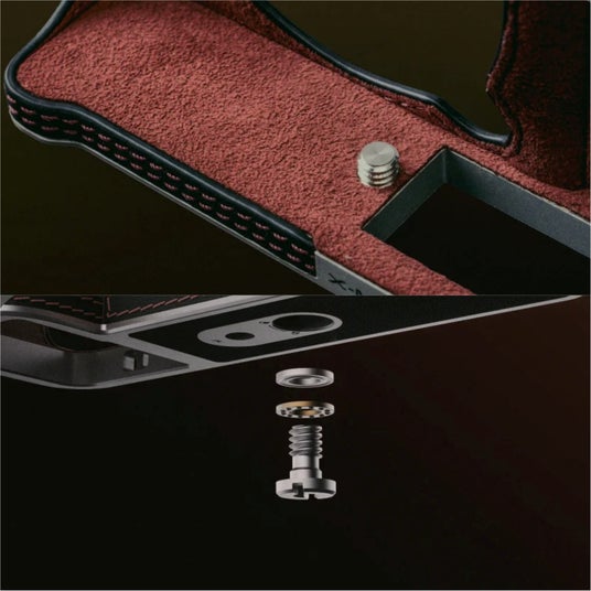 上質なイタリア・MASTROTTO(マストロット)社製レザーを採用し、カメラ形状に沿うフィット感と、日常の持ち運びでも安心できる保護性能を両立。1/4-20ネジ穴やSDカードスロットを備え、三脚撮影やアクセサリー装着にも対応します。クラシックなボディデザインに馴染むレザーの質感と、操作性を損なわない専用設計で、カメラを相棒として持ち歩く日常に自然と溶け込みます。