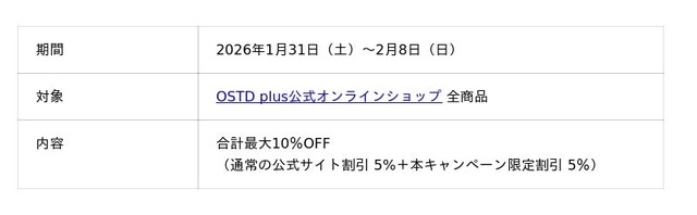 日頃よりOSTD plusをご愛顧いただいている皆さまへ感謝の気持ちを込めて、公式オンラインショップにてご利用いただける記念クーポンキャンペーンを実施しております。