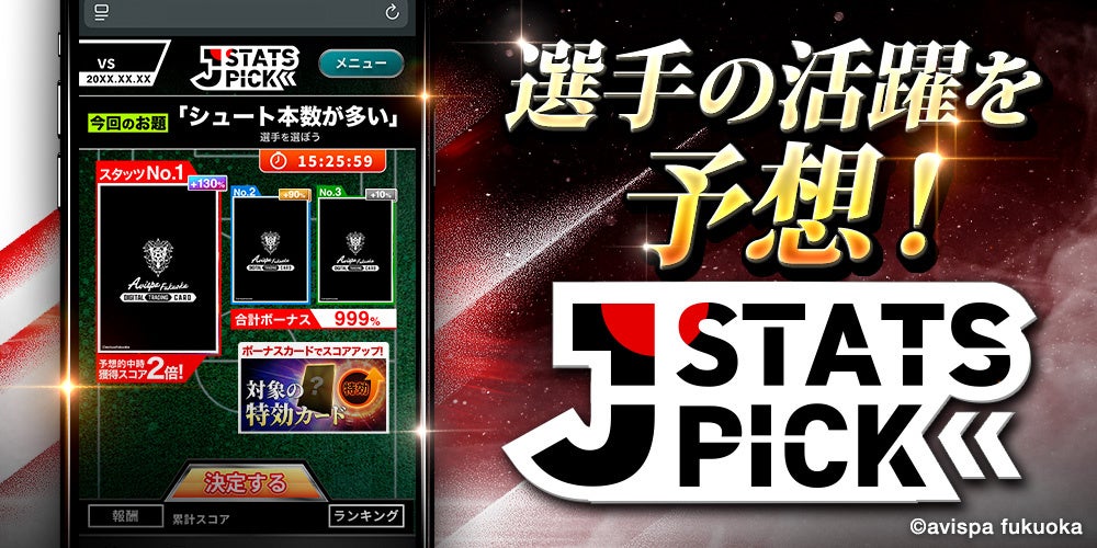 実際の試合データと連動した予想参加型コンテンツ「J STATS PICK」は今シーズンも開催。 試合ごとに設定される「テーマ(お題)」に合わせて活躍が期待される選手を3名選出し、実際の試合データに基づいたスコアでランキングを競います。 予想を的中させて上位に入賞すると、豪華報酬や限定カードを獲得可能です。さらに、特定のカードを所持・設定することで獲得スコアがアップする「特効」機能も搭載。集めたカードを活用し、戦略的に試合予想を楽しみましょう。