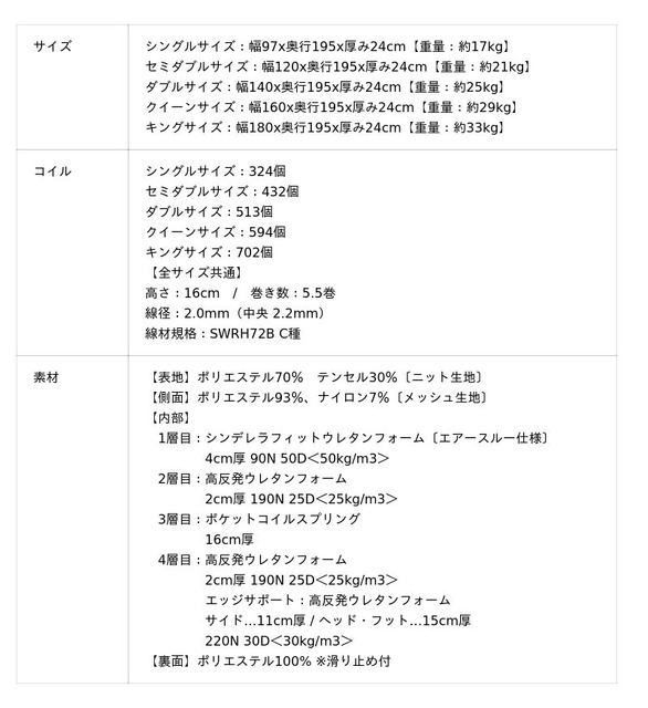 さらに、『寝落ち姫のマットレス』は、コイルを並行に配置する配列方式を採用しています。