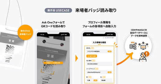 この協業によって、デジタル化・DX推進展 実行委員会(イノベント内)主催の展示会「デジタル化・DX推進展(以下、ODEX)」において発行される来場者QRコードを Ask One で読み取り可能になります。
