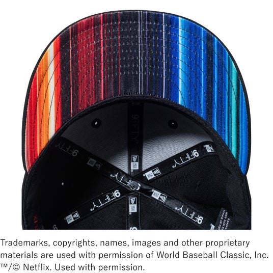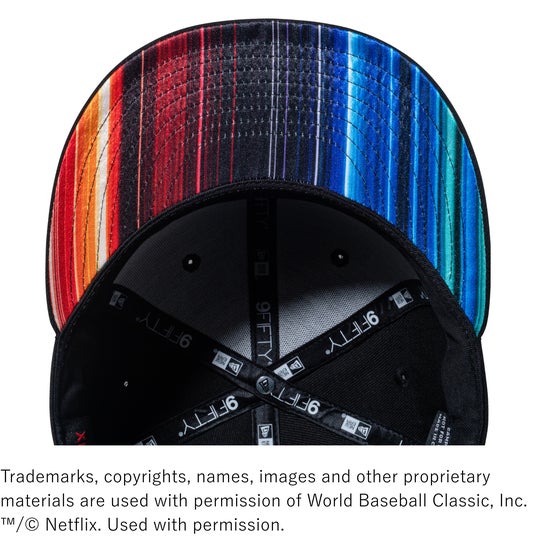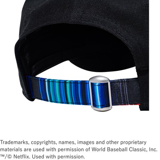 各アイテムには、Netflixおよび2026 World Baseball Classic(TM)のロゴを配し、さらにNetflixを象徴するストリームラインをデザインのアクセントとして取り入れています。立体的なフォルムとアジャスタブル仕様による安定したフィット感が特長の[9FIFTY(TM)(ナインフィフティー)]にはアンダーバイザー(つば裏)にストリームラインを配し、芯のない構造で柔らかな被り心地が特長の[9THIRTY(TM)(ナインサーティ)]にはリアのアジャスター部分に同デザインをあしらっています。