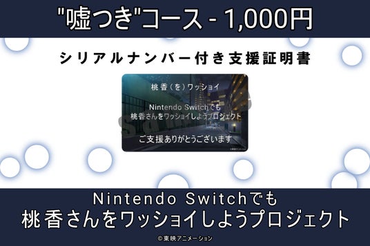 ゲーム内クレジットや『桃ワショ』ロゴTシャツなどのリターンを用意しております!!▼"嘘つき"コース 1,000円